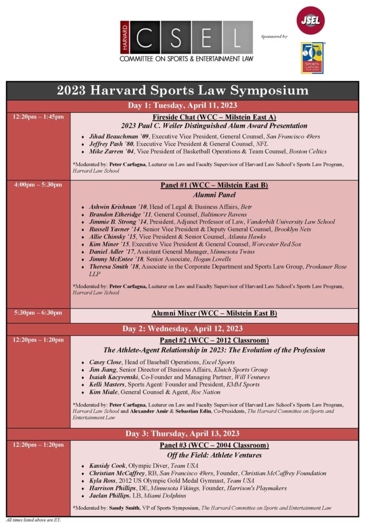 Please register for each event of the 2023 Harvard Sports Law Symposium.