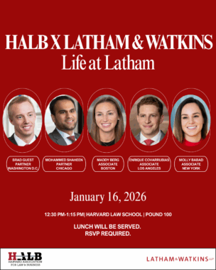 Join HALB and Latham & Watkins for an in-depth conversation about life in Big Law. The discussion will feature leading partners and associates from the firm’s Corporate and Litigation practice areas, representing several offices – New York, Washington, D.C., Los Angeles, and Boston. Topics will include each attorney’s path to law school, as well as their perspectives on navigating big law, life at Latham, and more. RSVP here.