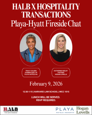 Join HALB for an exclusive conversation examining a real-world hospitality M&A transaction. This case-study discussion will feature Tracy Colden, former General Counsel of Playa Hotels & Resorts, and Katherine Keeley of Hogan Lovells, who advised on Playa’s acquisition by Hyatt. Drawing from their firsthand experience, the speakers will walk through the structure of the transaction, key negotiation dynamics, and strategic considerations unique to hospitality deals. Do not miss this rare opportunity to gain practical insight into how complex, high-stakes deals are executed from both the company and advisor perspectives. RSVP here.
