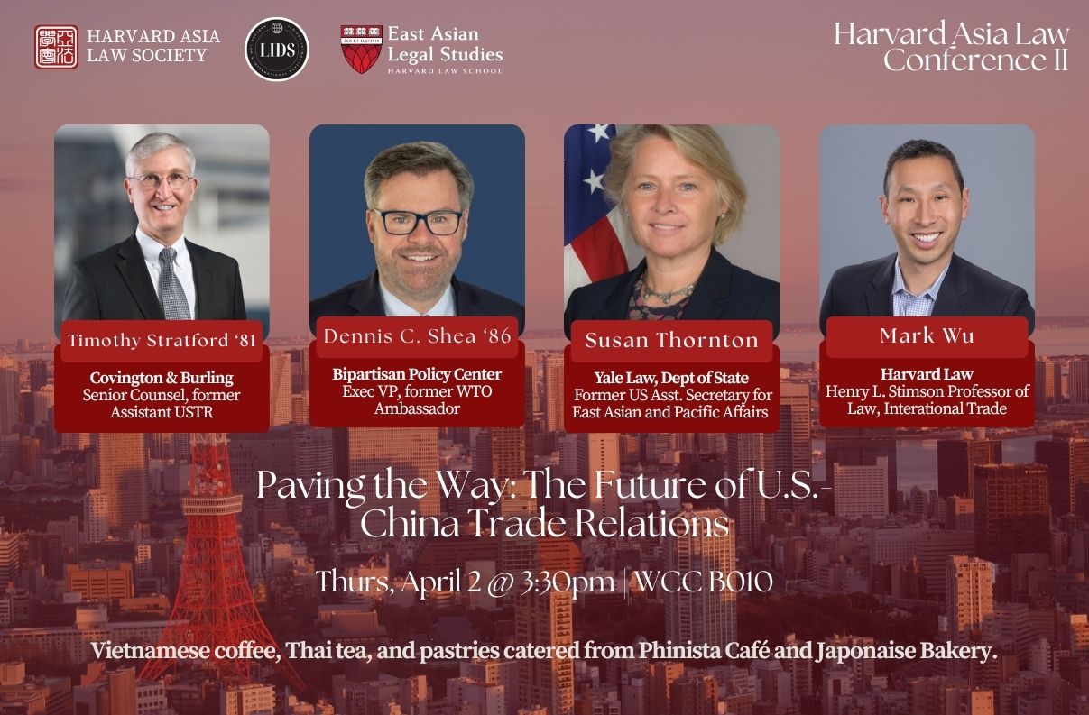 The U.S. and China are the world’s two largest economies, constituting nearly half of the global GDP and manufacturing output. They are also each other’s largest trading partners. Yet, over the past decade, their trade relationship has faced steep challenges characterised by an ongoing trade war, intense strategic competition, and geopolitical tensions. Gathering experts on international trade and policy, this panel looks into the history and future of U.S.-China trade relations under the current presidential administration, as well as its implications for law students and the broader Asian legal community interested in practicing in that region.