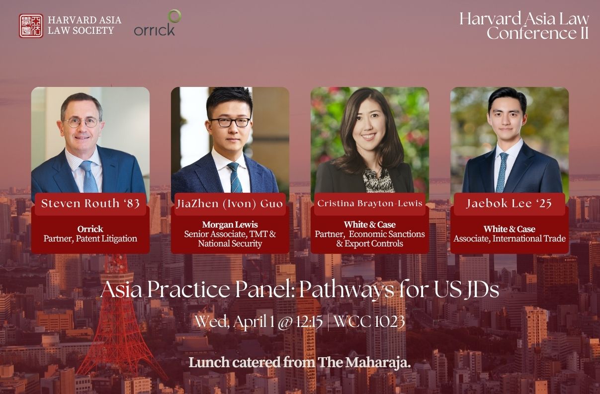 The Asia Practice Panel highlights the diverse pathways available to U.S.-trained lawyers pursuing Asia-focused legal careers. Featuring practitioners from global big-law firms, the discussion will showcase work spanning transactional, litigation, and regulatory practices. Speakers will share insights from their experience advising on matters in or involving key markets such as China, Japan, and Korea, and explain how their practices intersect with cross-border business. In addition to the opportunities available, the panel aims to inform students about helpful skillsets and challenges involved in pursuing a career in private cross-border law.